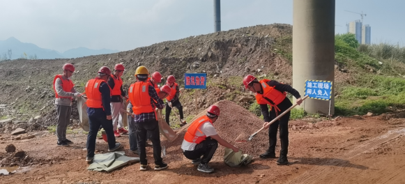 演练参与人员为项目部及下属施工班组全体人员,共分成抢险救灾、物资供应、通信保障、后勤保障四个小组。本次演练共出动车辆二台;防汛物资:安全绳十二套、手套五十双、雨靴五十双、发电机一台、铁锹二十把、救生衣二十件、编织袋千余条等。